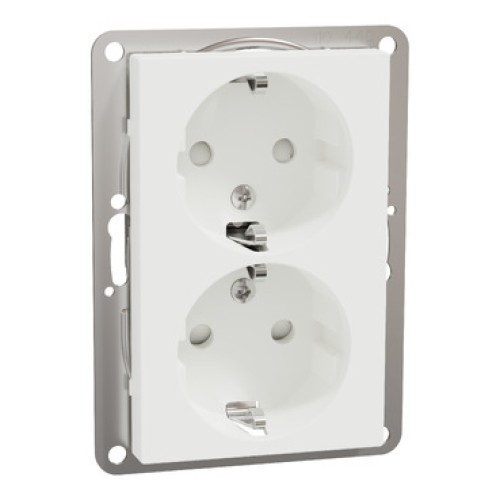 WDE002184 2 Socket-outlet, Exxact, mechanism with fixing frame, 2P + E, 16A, Schuko, with shutter, screwless terminals white