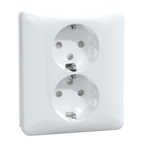 WDE002196 2 Socket-outlet, Exxact, complete product, 2P + E, 16A, Schuko, with shutter, screwless terminals white