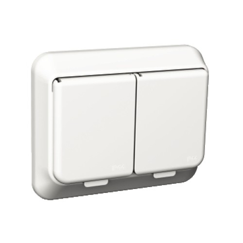 WDE002592 2 Socket-outlet, Exxact, complete product, 2P + E, 16A, Schuko, with shutter, screwless terminals, IP44 white